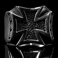 Templerkreuz Ring mit Flammen Muster an den Seiten, aus 925er Sterling Silber.